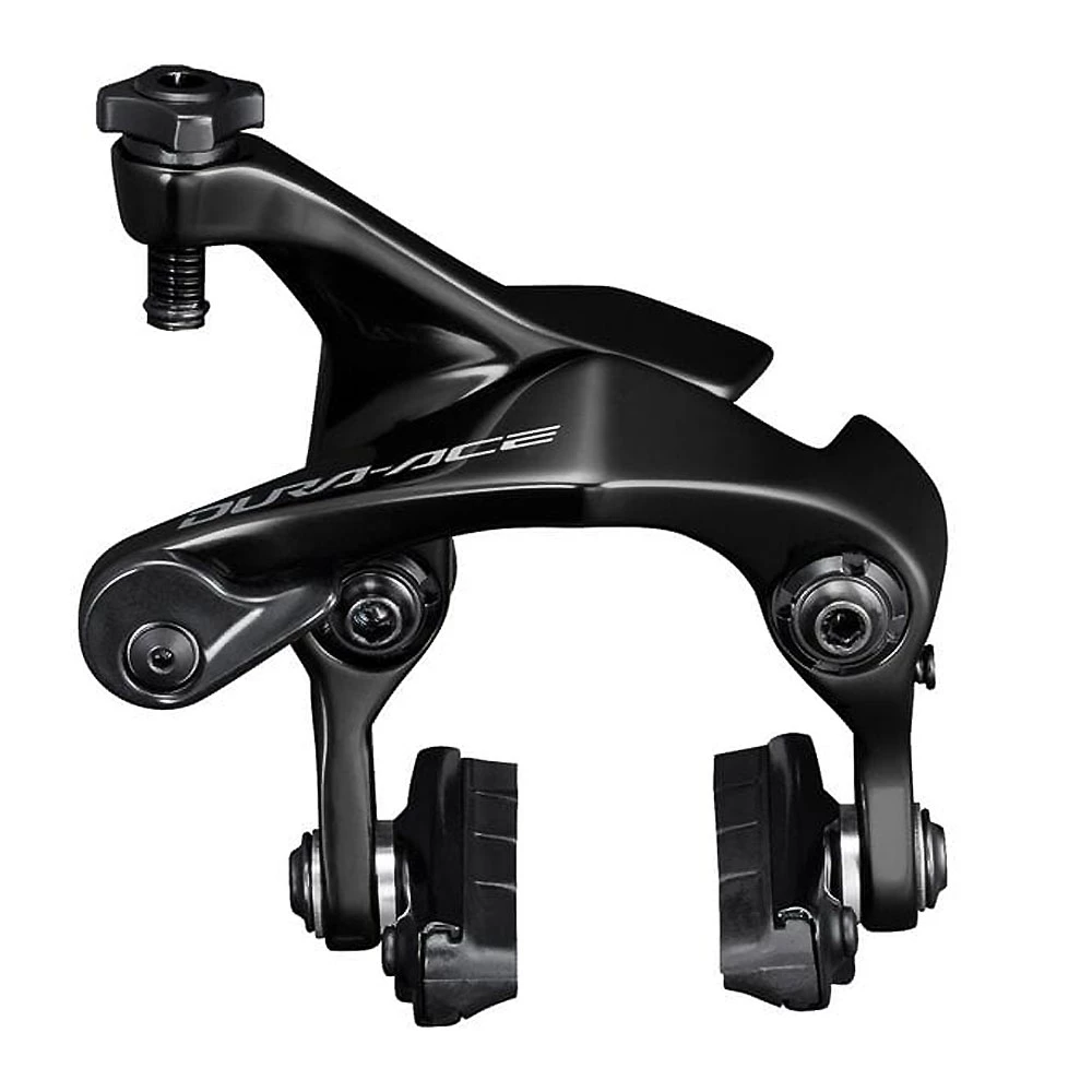 Offering an 11mm lower profile for improved aerodynamics while still allowing clearance for up to 28mm wide tyres, the rear Shimano Dura-Ace R9210-RS Seatstay Direct Mount Rim Brake grants performance to dedicated racing cyclists. The design includes enhanced brake arch proportions for a quicker linear response and increased power, while the thrust bearings and coated bushings provide a smooth and progressive feel. Moreover, precise set-up is possible thanks to the spring tension adjuster and easy toeing-in of the brake pads, allowing the braking sensation to be finely tuned.